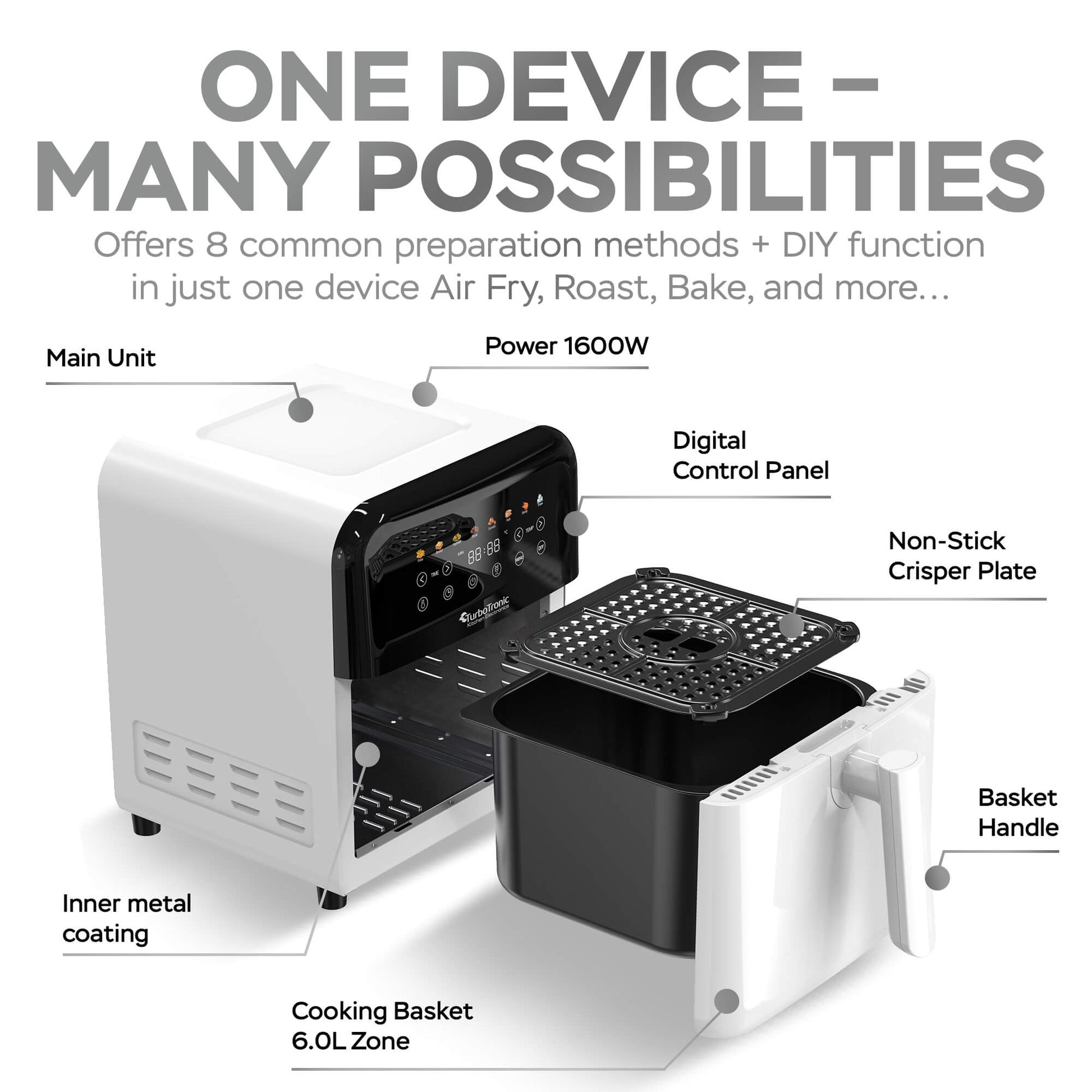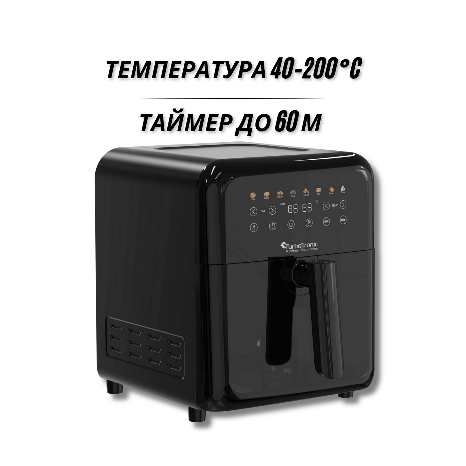 AirFryer Дигитален Turbotronic Airchef Pro TT-AF190, 6.0L, 8зададени програми, дигитален дисплей, 1600W