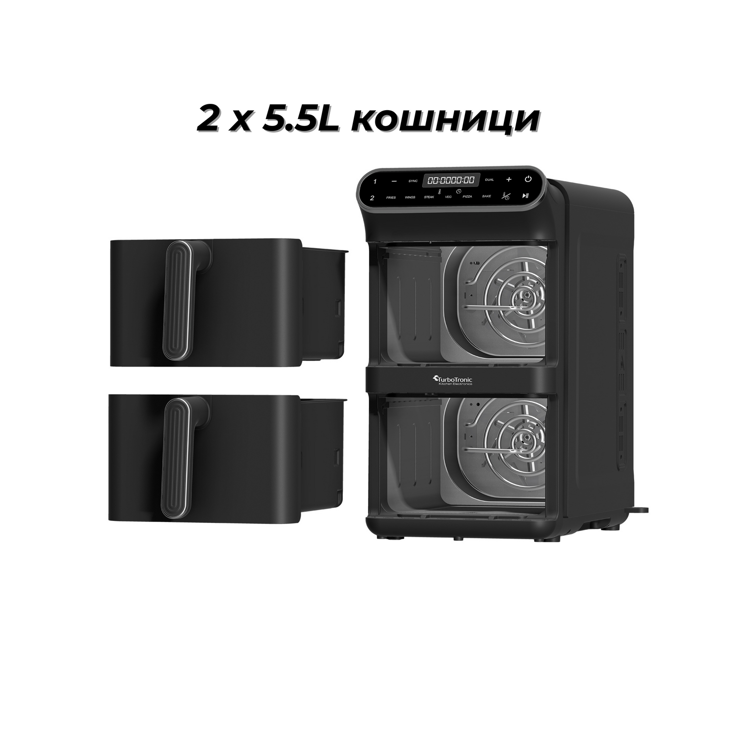 Колонен AirFryer TurboTronic TT-AF500D, 2460W, 11L (2×5.5L), 6 функции, 200°C, тъч дисплей