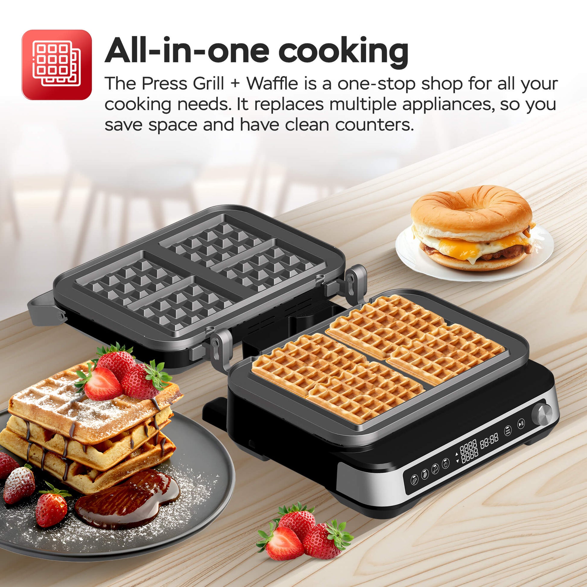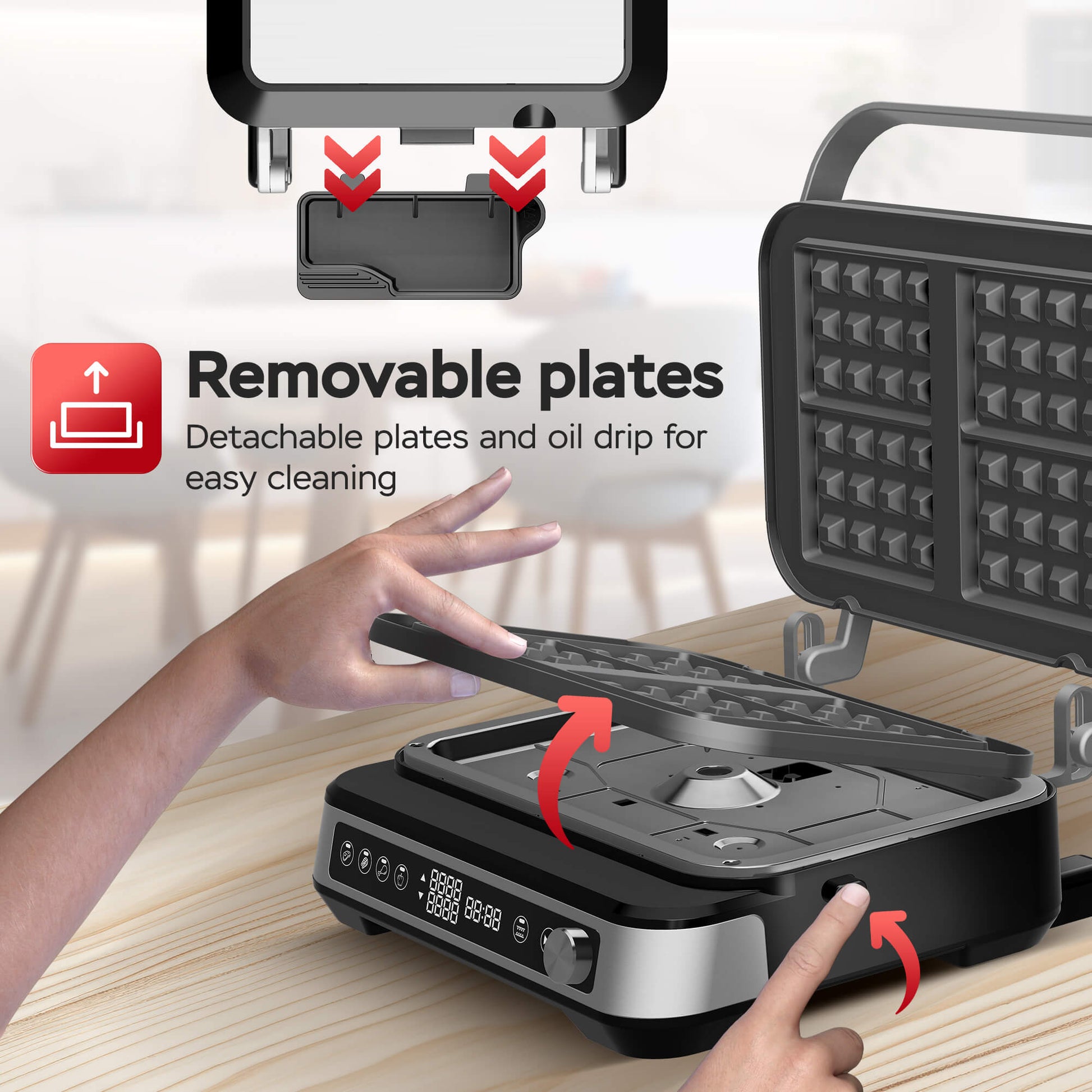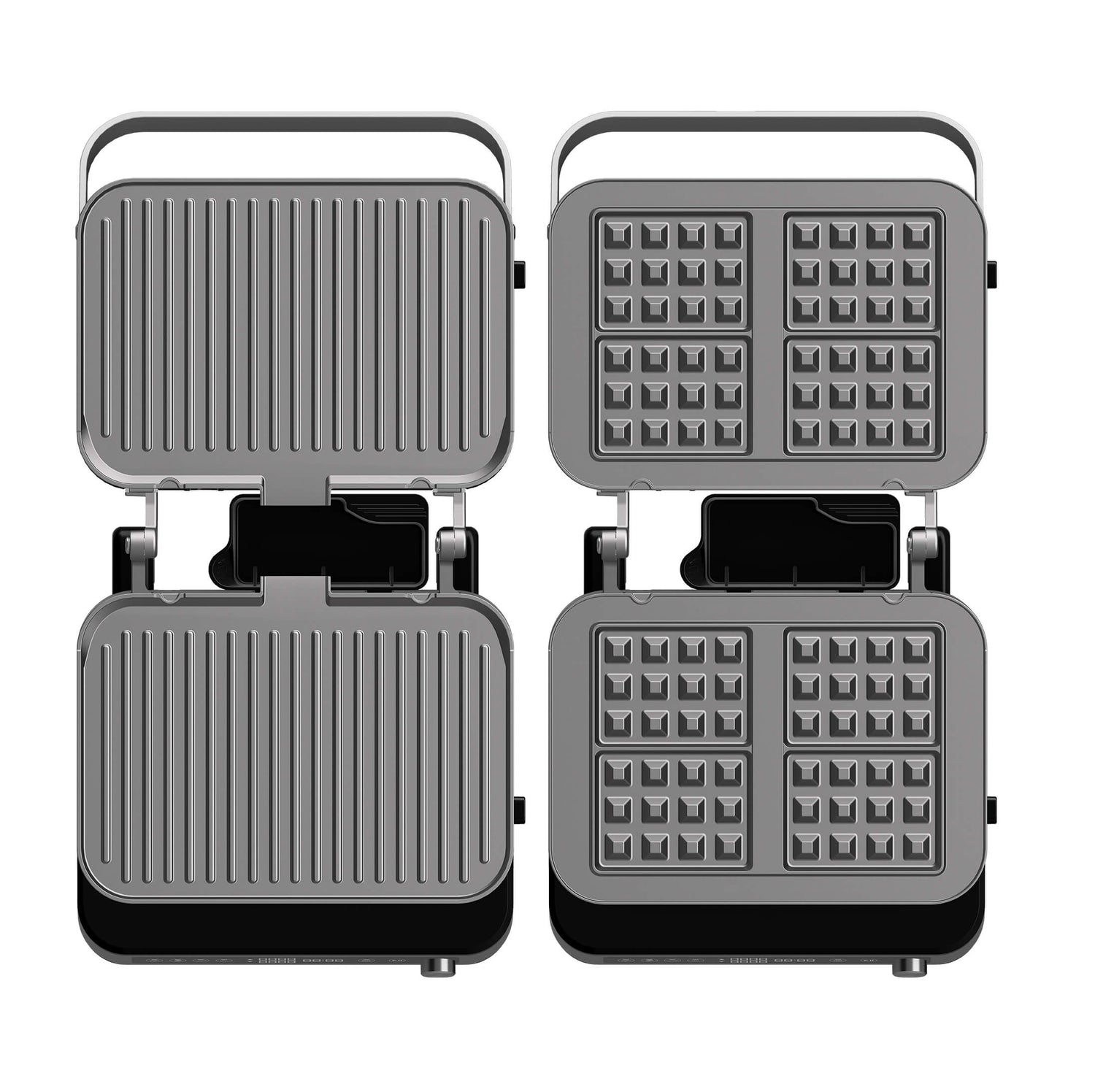 Разнообразете семейното меню с включените комплекти плочи с незалепващо покритие – приготвяйте перфектно изпечено месо или пухкави гофрети с един уред.