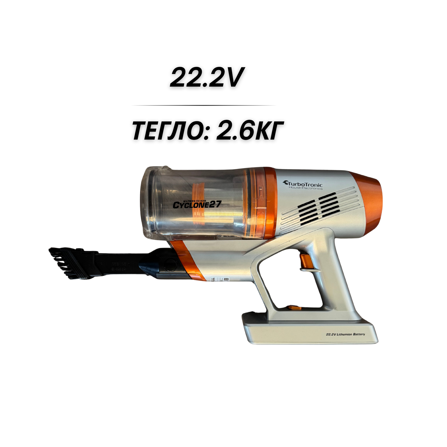 Вертикална прахосмукачка TurboTronic TT-C27, 11 kPa, 0.9L, безжична 2в1, 2.8 кг, HEPA