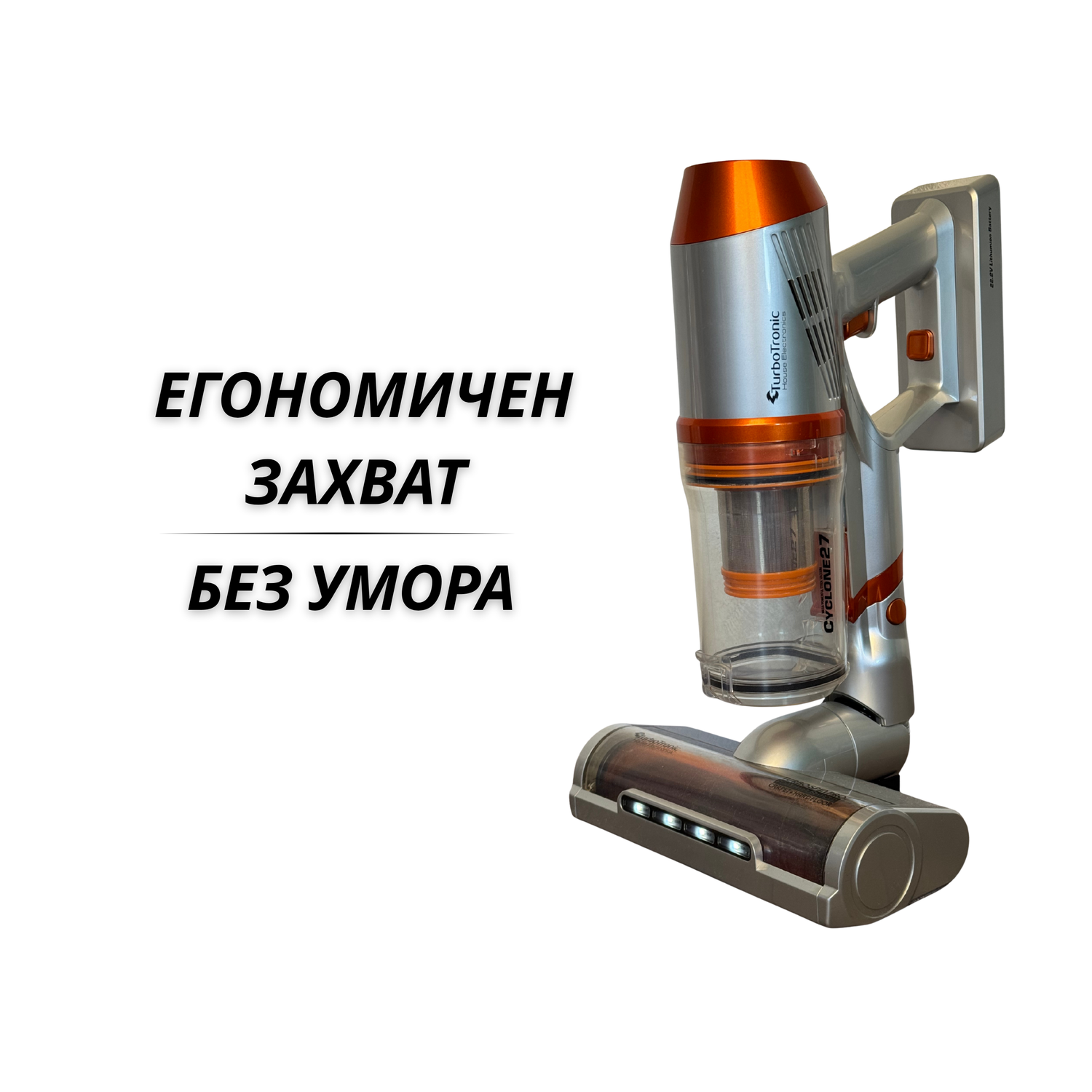 TurboTronic Cyclone комбинира ергономична форма с оптимално тегло, което ти позволява да почистваш дълго без умора. Почистването става приятна част от деня ти.
