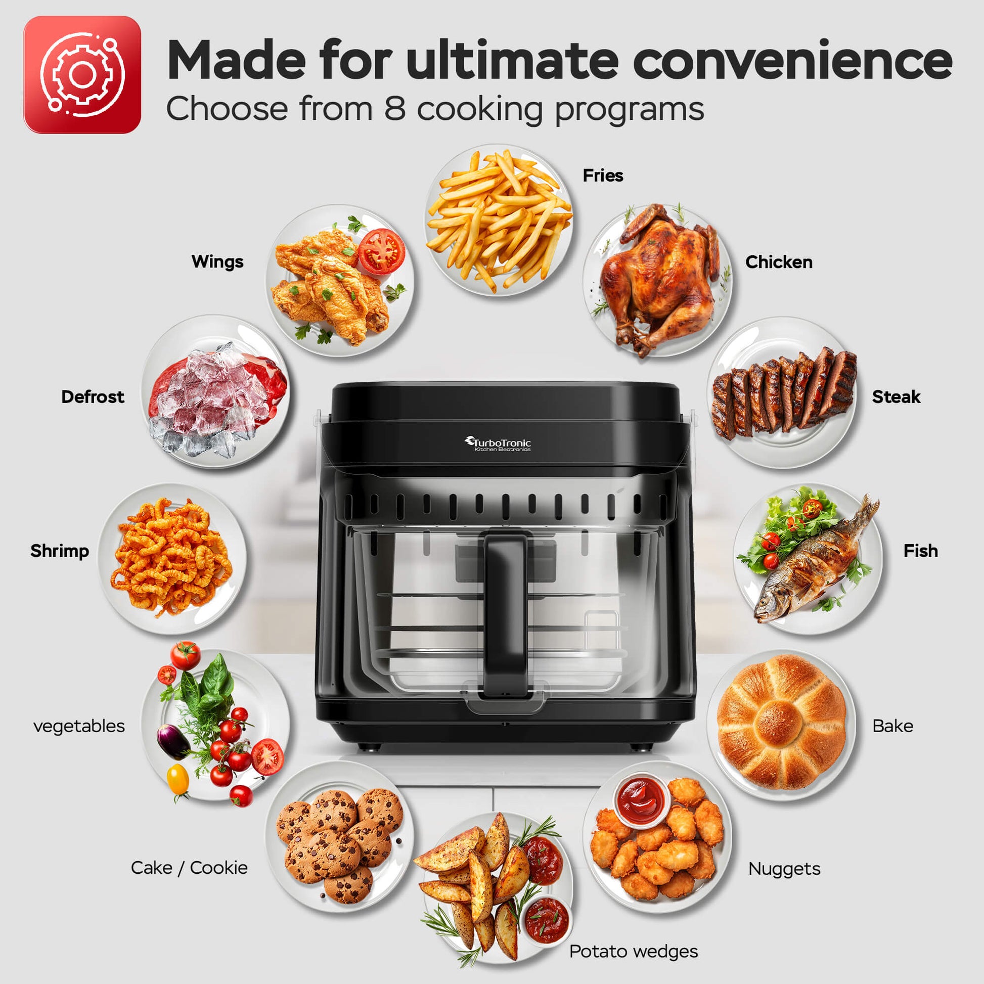 Фритюрник с горещ въздух TurboTronic TT-AFG5, 5.5L, 1200W, стъклена кошница, дигитален контрол, 8 програми