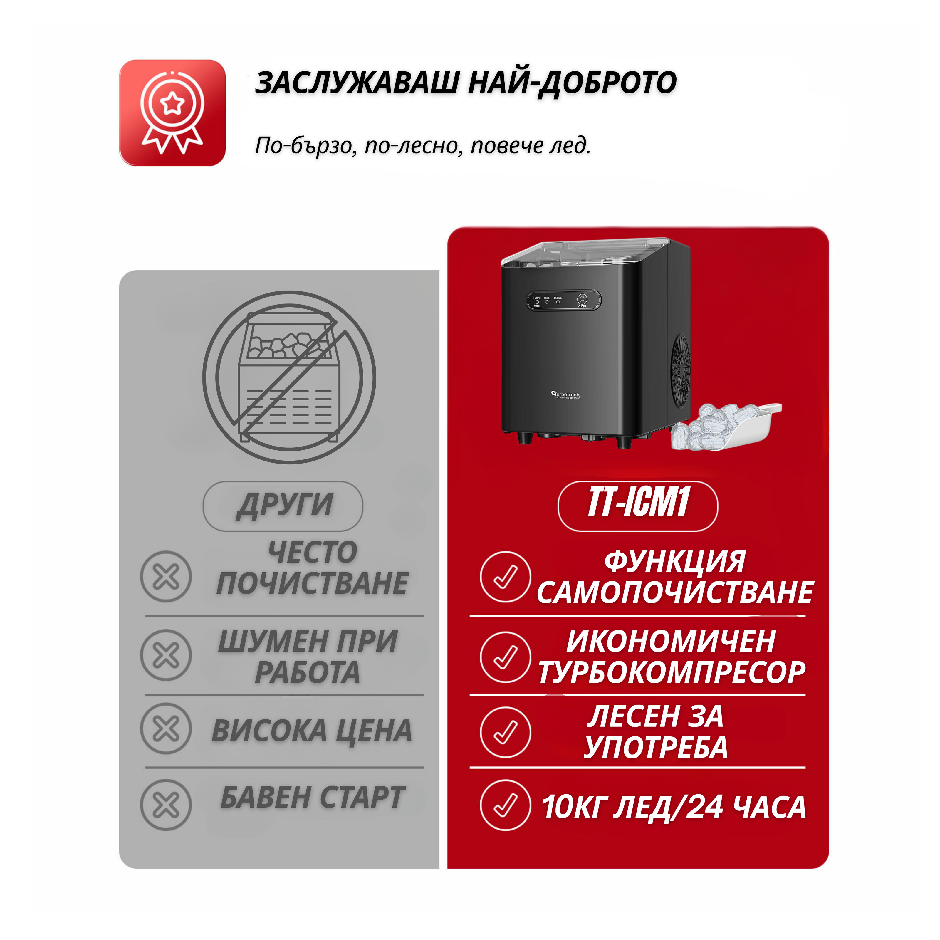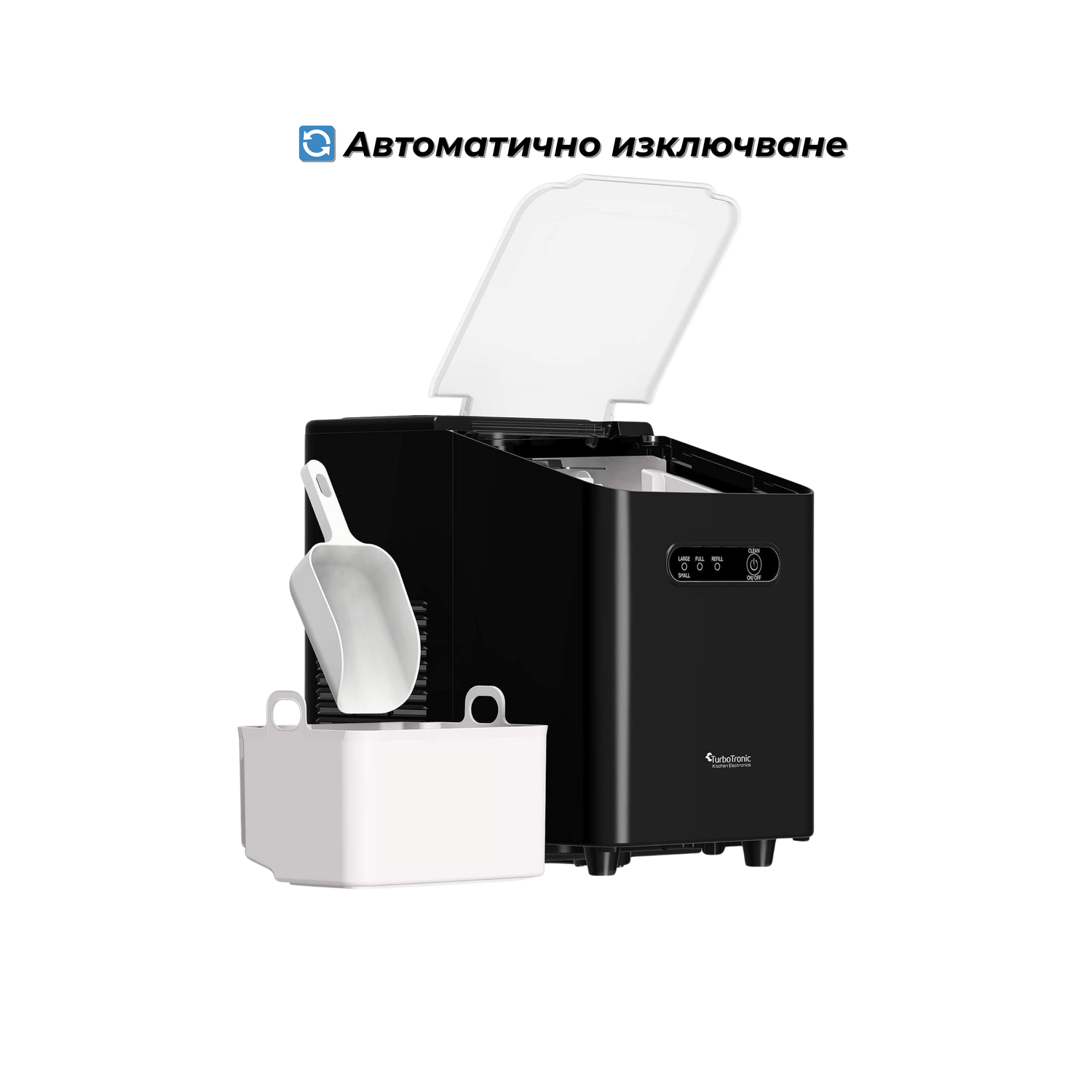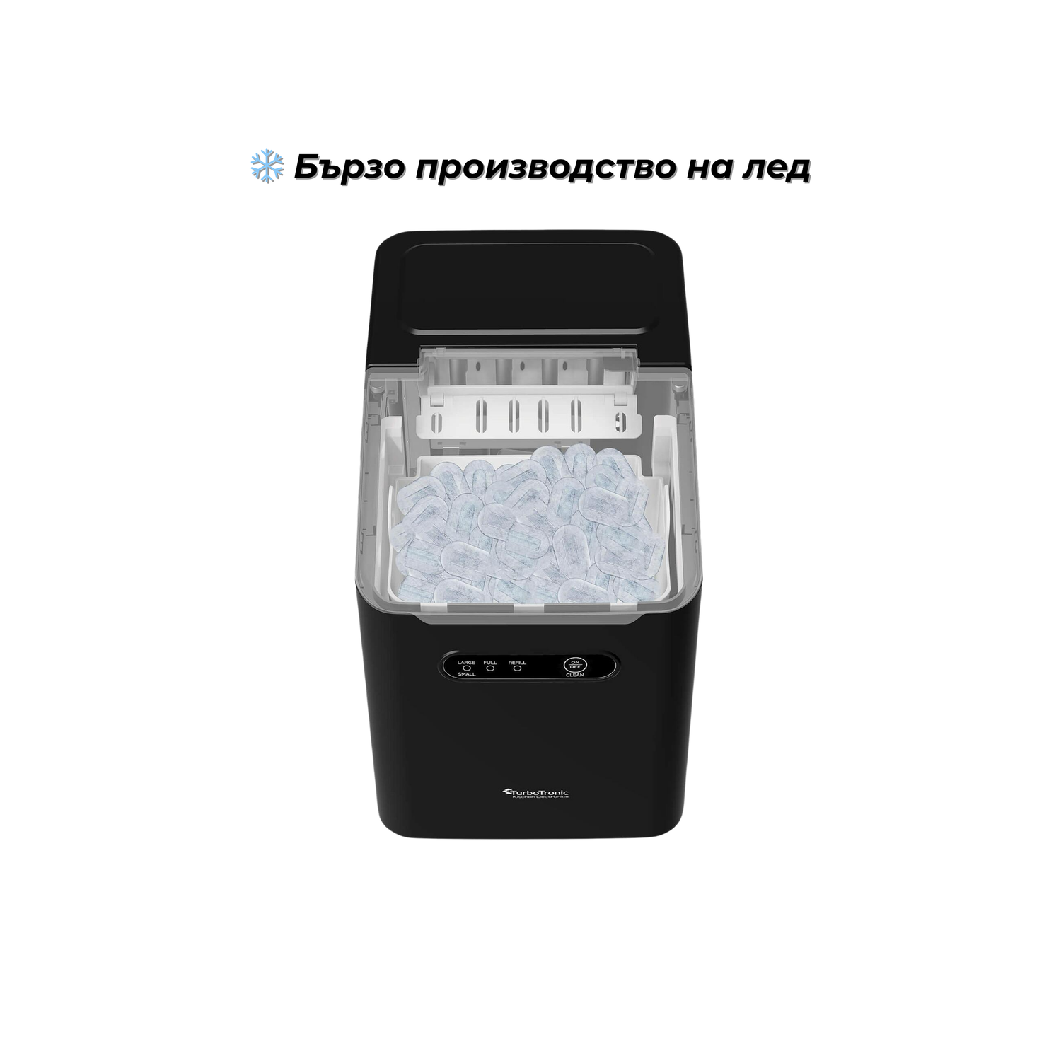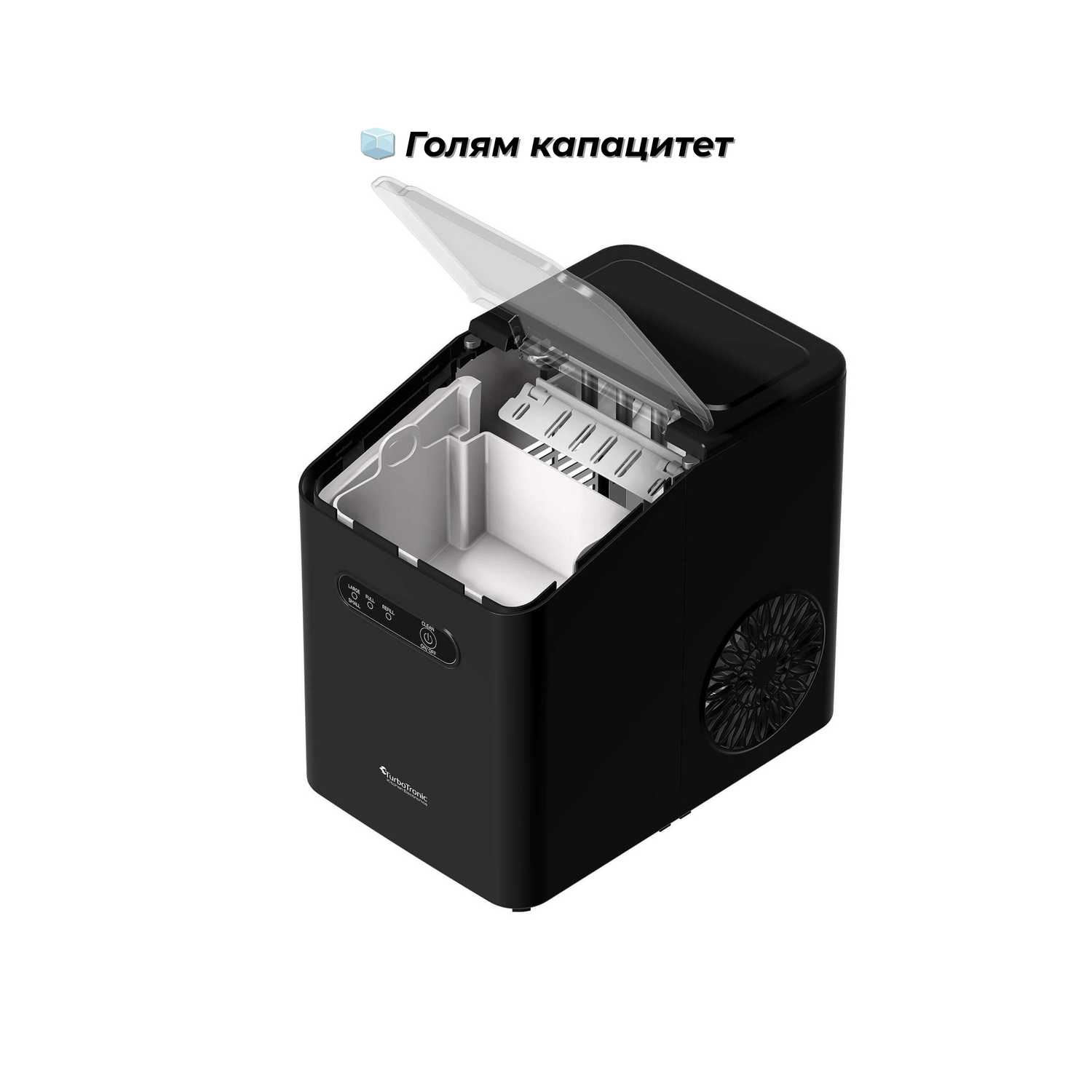 Ледогенератор TurboTronic Iceberg TT-ICM1, 120W, 10 кг/24ч, 2 размера кубчета, 1L резервоар, Soft Touch панел