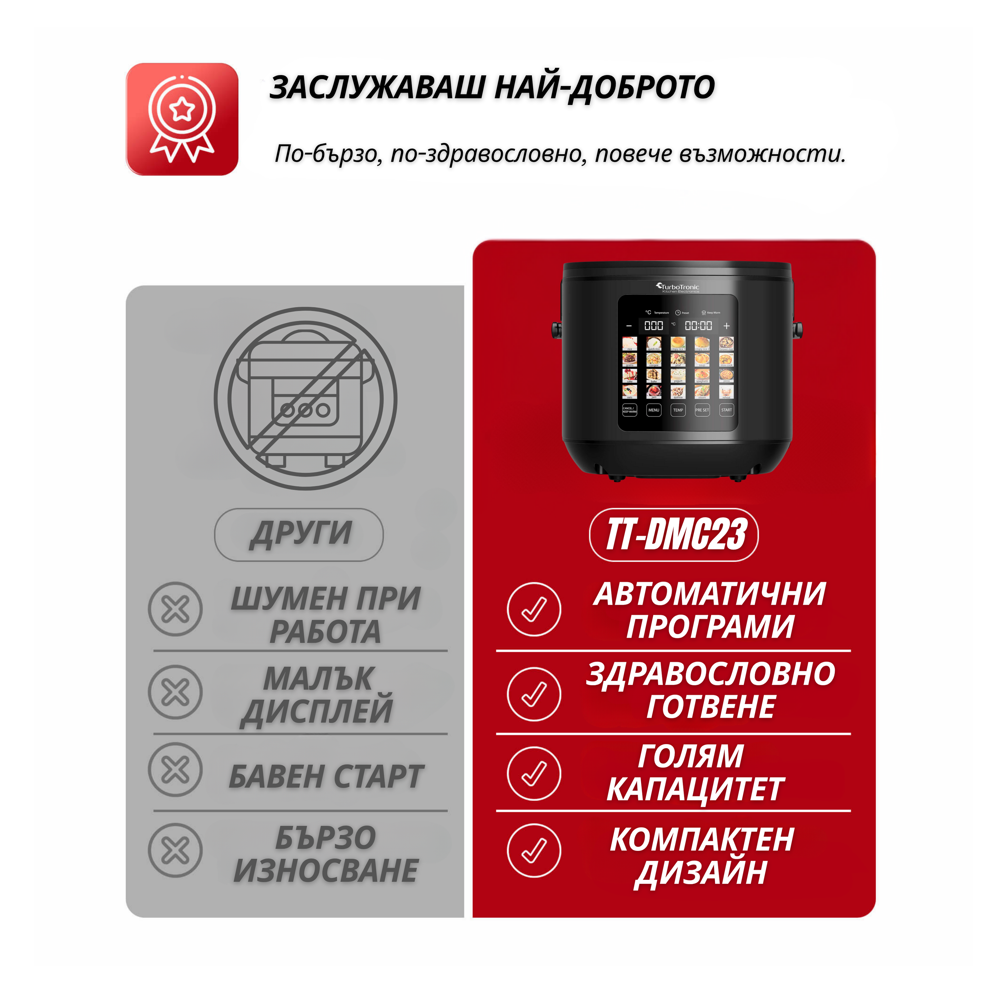 Мултикукър 20 в 1 TurboTronic TT-DMC23, 860W, 5L, LED тъч дисплей, керамично покритие, 24h таймер