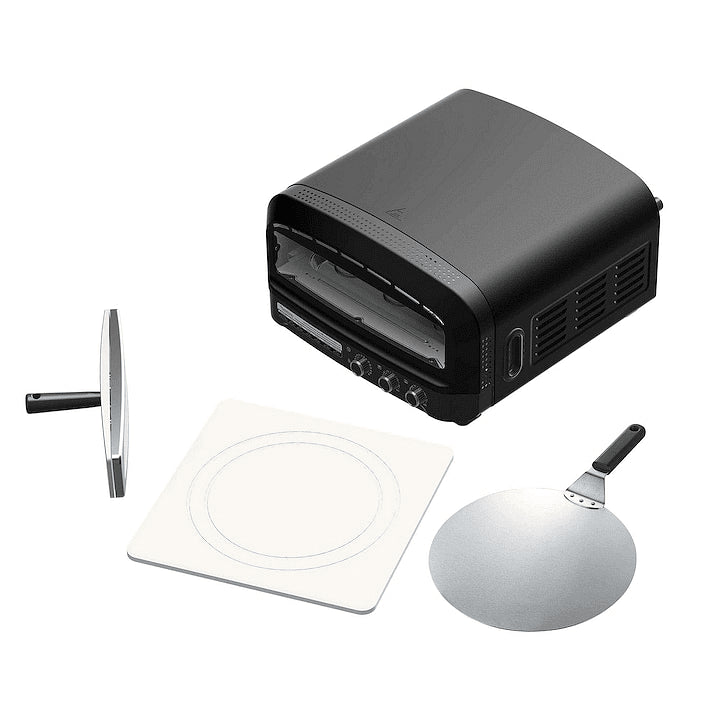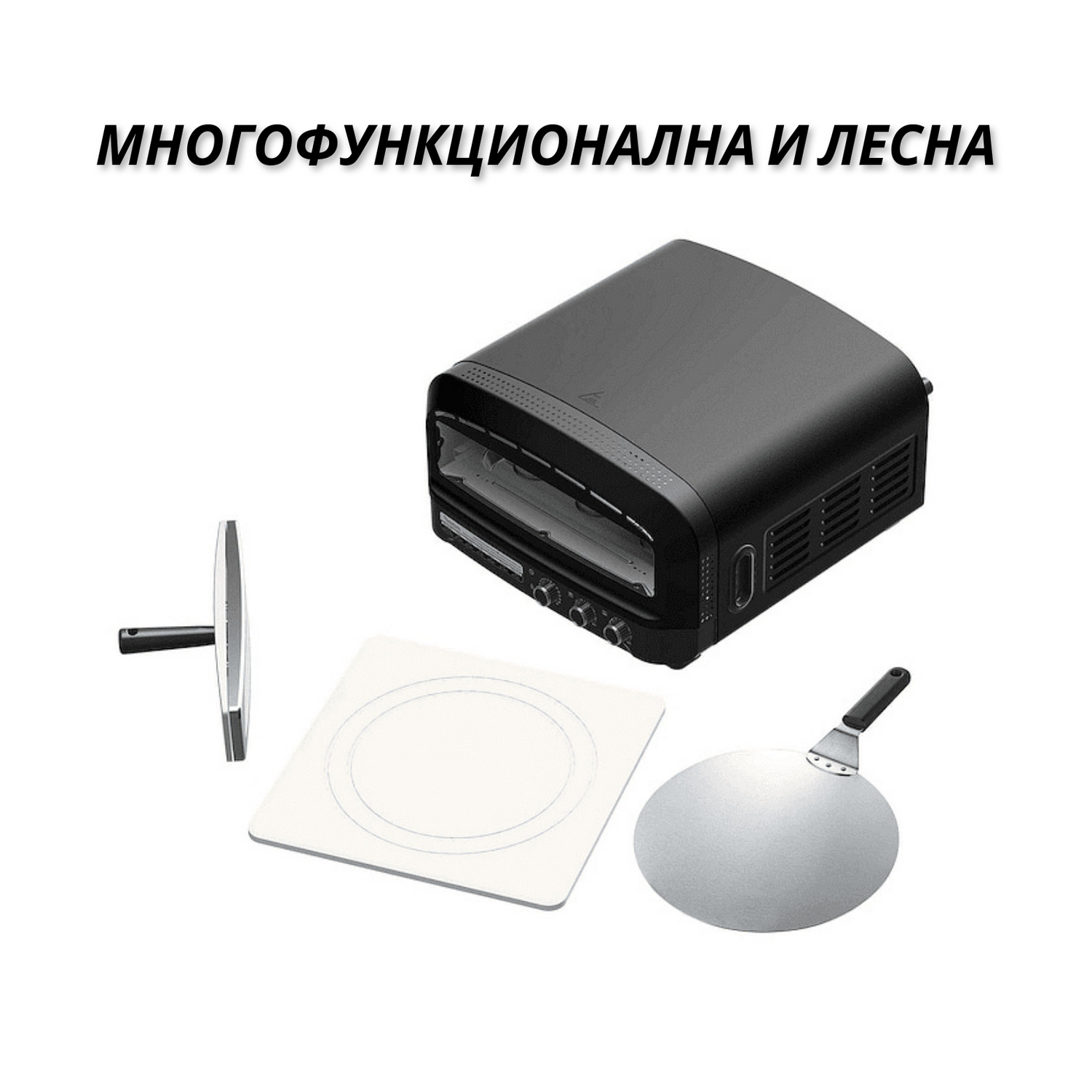 Със своето елегантно черно покритие и корпус от неръждаема стомана, Pizzaliano се вписва перфектно във всяка кухня, добавяйки стил и функционалност.