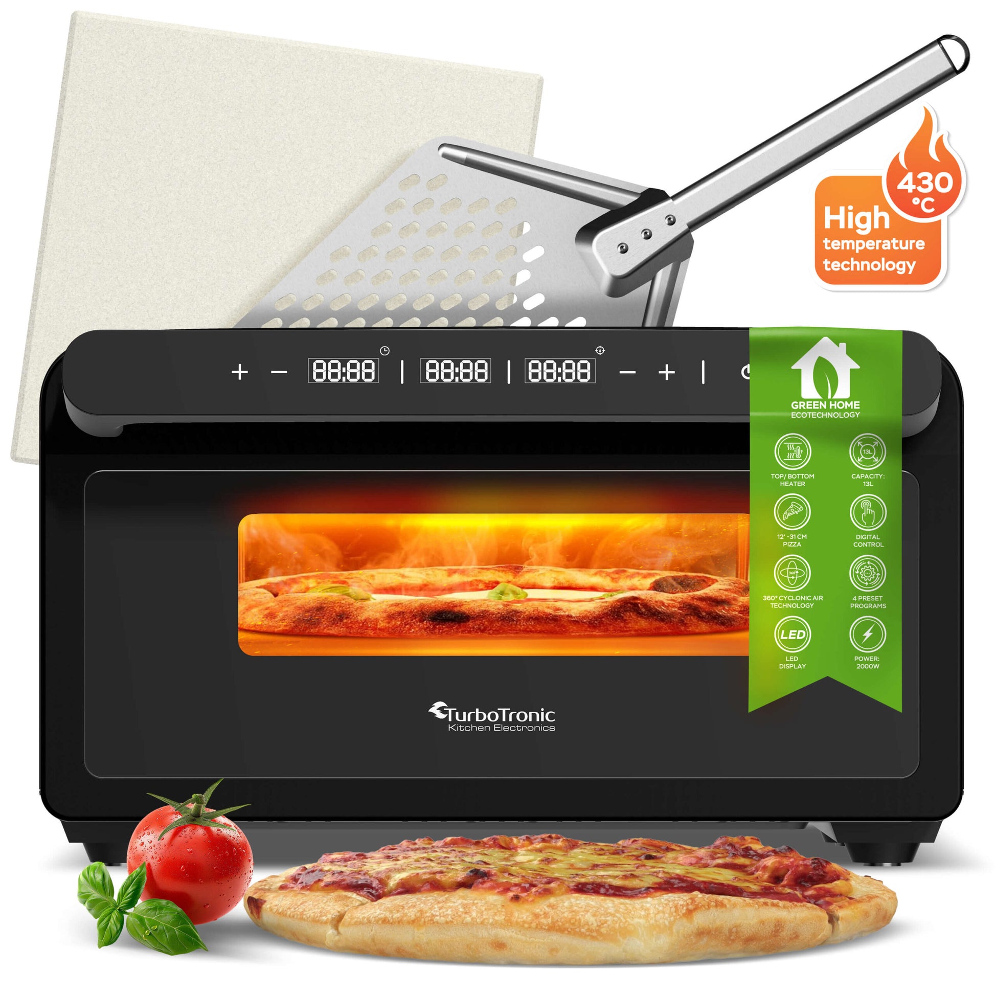 Електрическа пещ за пица TurboTronic TT-PO15, 2000W, до 430°C, 13L, за 12” пица, цифров контрол